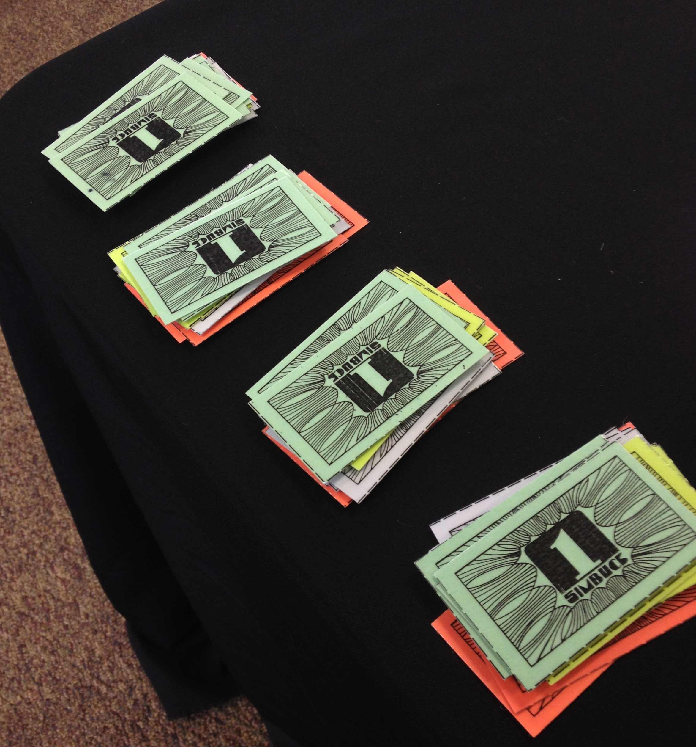 - Pricing – in this game, cost is used to signal the importance of an item. Items that might be considered highly desirable to the players and\or might be considered important to Scrum are priced beyond the purchasing power of a single individual. The high cost of these components encourages participants to share their experiences on why the component is important to them or essential to a successful application of Scrum. In their conversations, participants may solicit other players for money in order to purchase the an expensive item. Sometimes, players will hear something that might cause them to change their mind. These interactions, brought about by the different prices, encourages peer-to-peer sharing and amplifies learning.